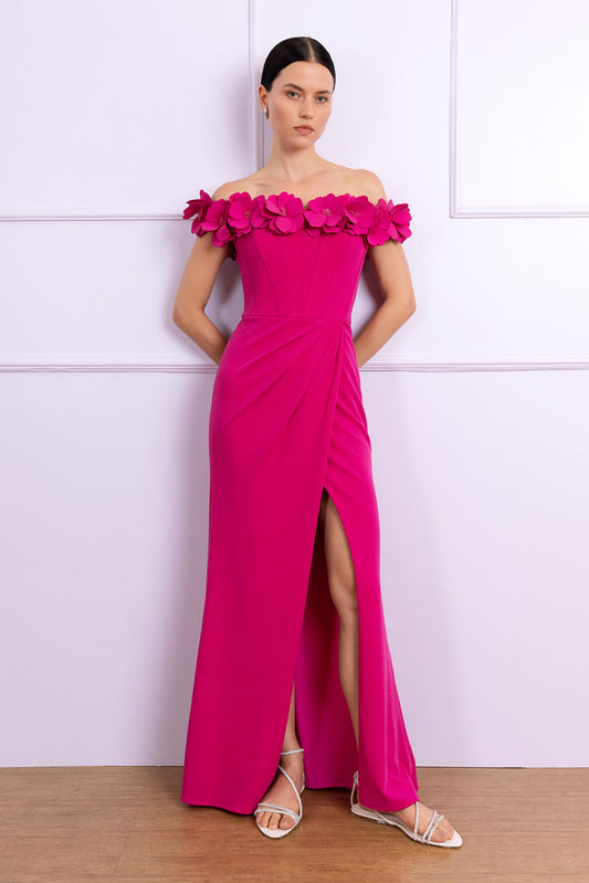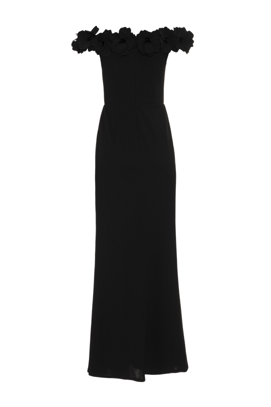 VESTIDO LONGO CREPE PETALS OFF WHITE
