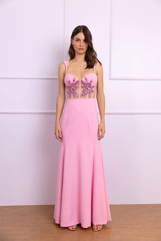 VESTIDO LONGO CREPE LIGHT SPOT PINK