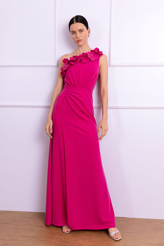 EsgotadoVESTIDO LONGO CREPE PETALS ROSA