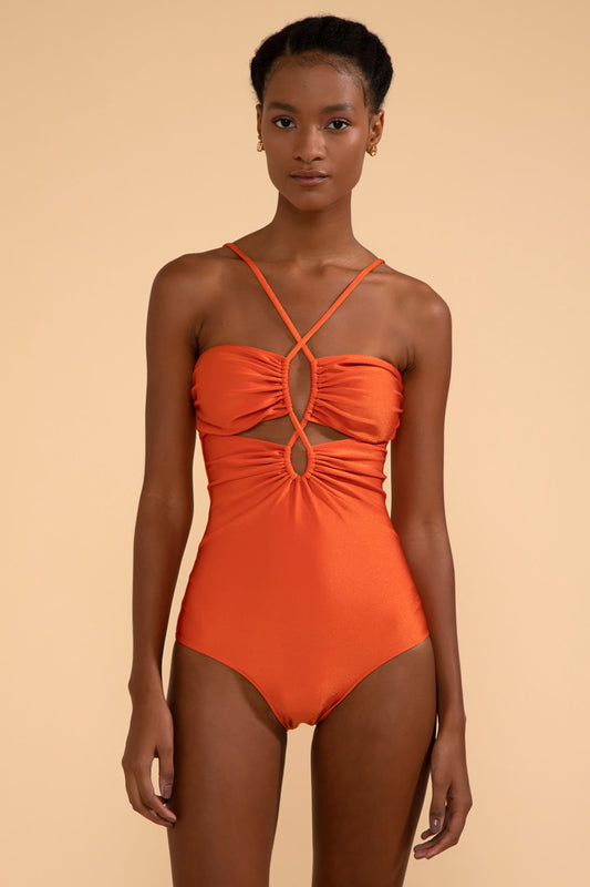 EsgotadoBODY RECORTES LYCRA APRICOT LARANJA