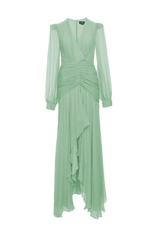 VESTIDO LONGO DRAPEADO SILKY RESORT VERDE MENTA