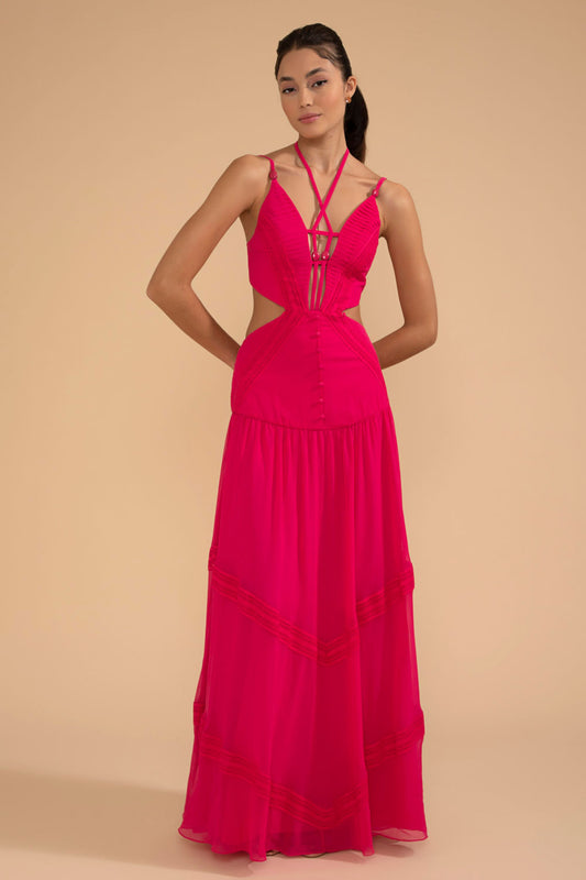 VESTIDO LONGO DECOTE TIRAS CHIFFON ÍRIS PINK