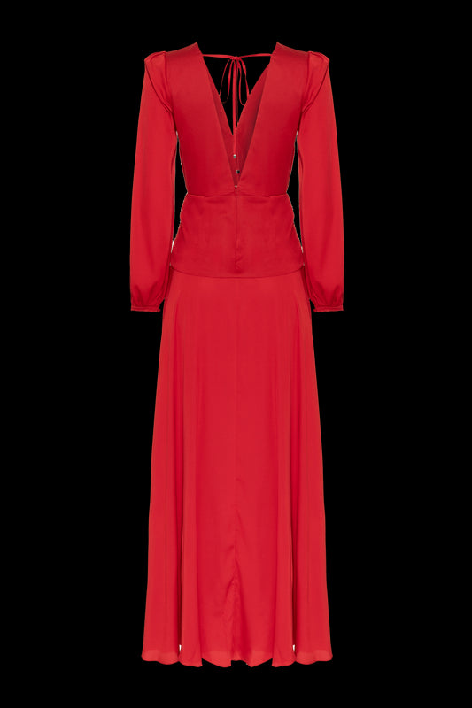 VESTIDO LONGO DRAPEADO CETIM OLD GLAM VERMELHO