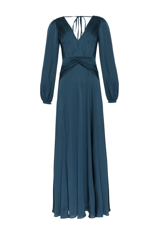 VESTIDO LONGO DRAPEADO CETIM OLD GLAM VERDE