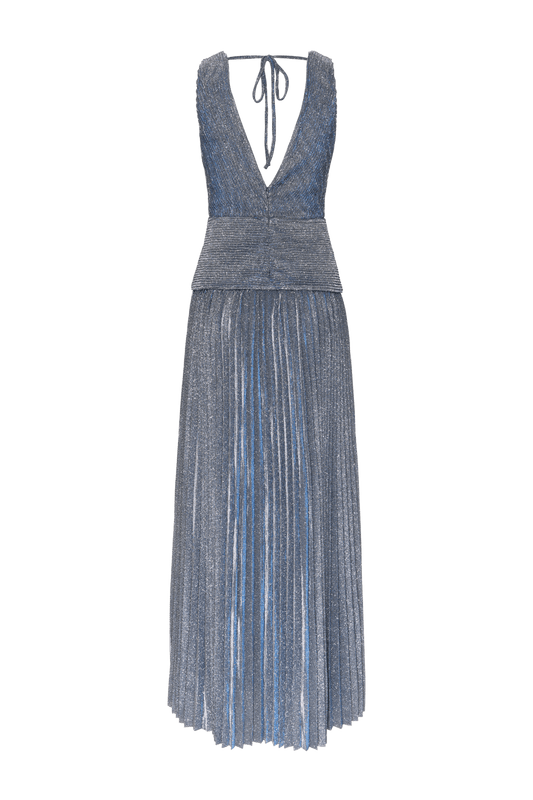 VESTIDO LONGO DRAPEADO MALHA PRETTY SHINE PRATA
