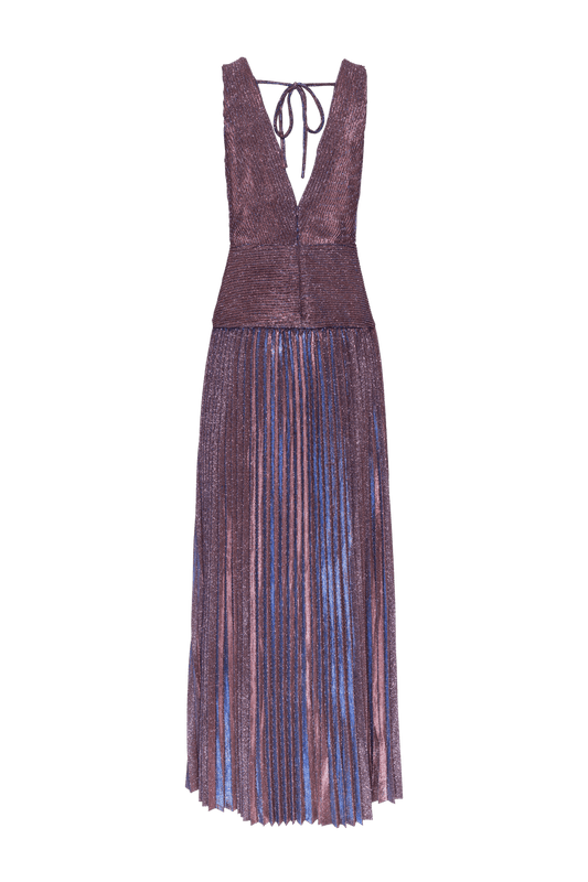 VESTIDO LONGO DECOTE TIRAS CHIFFON ÍRIS LILAS