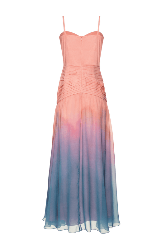 VESTIDO LONGO DRAPEADO KOBAI DEGRADE MULTICOLOR
