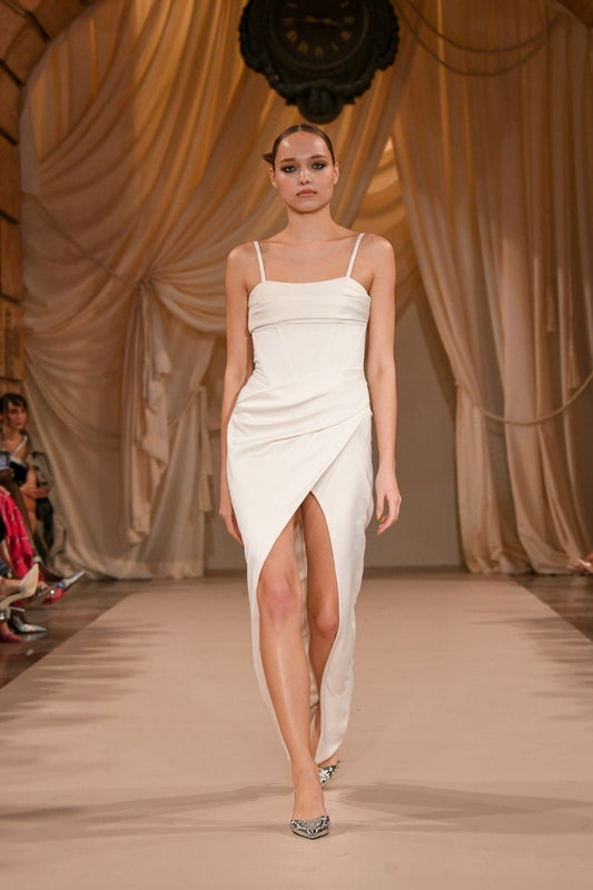 VESTIDO LONGO FENDA CREPE DESIRE OFF WHITE