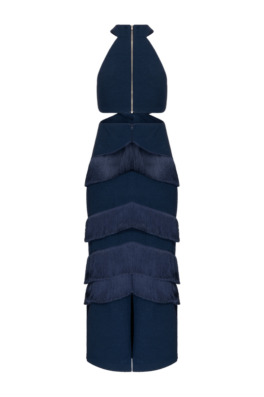 VESTIDO LONGO FENTE ÚNICA GEMINI ACQUA AZUL ESCURO
