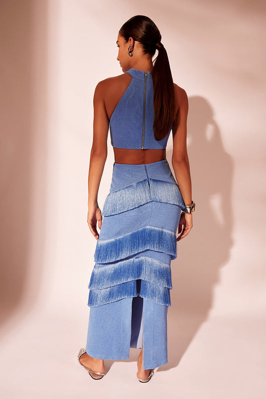 VESTIDO LONGO FENTE ÚNICA GEMINI ACQUA AZUL