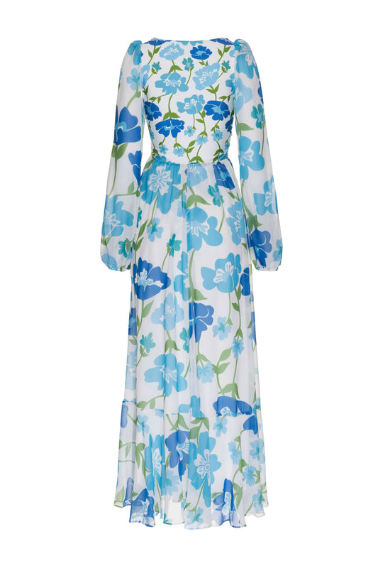 VESTIDO LONGO FRANZIDO FLORAL ANNA OFF WHITE