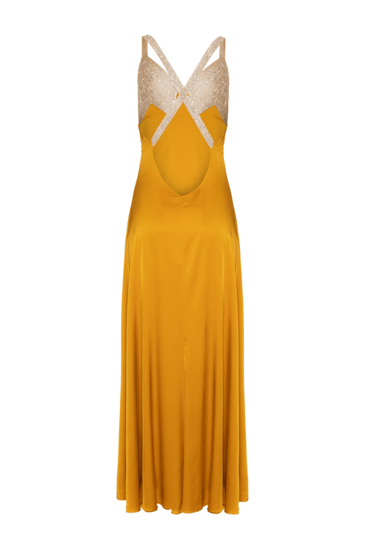 VESTIDO LONGO FRANZIDO CETIM MIRACLE MOOD AMARELO