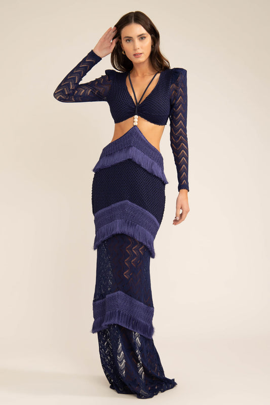 VESTIDO LONGO FRANJAS DEEP DIVE AZUL MARINHO