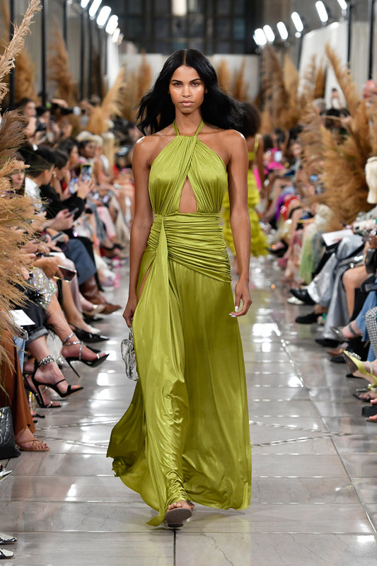 VESTIDO LONGO FRANJAS CETIM WAVES VERDE