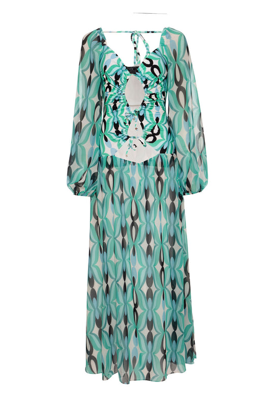 VESTIDO LONGO FRANZIDO CHIFFON TURNER VERDE