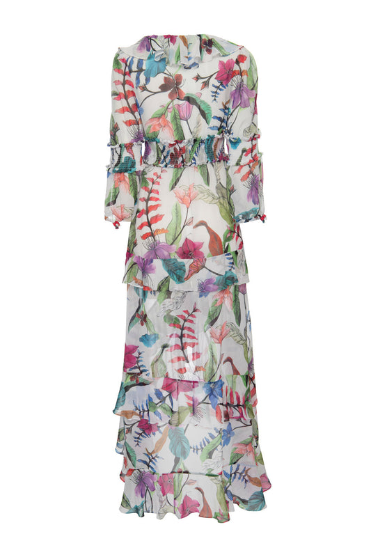 VESTIDO LONGO LASTEX FLORAL OLGA OFF WHITE