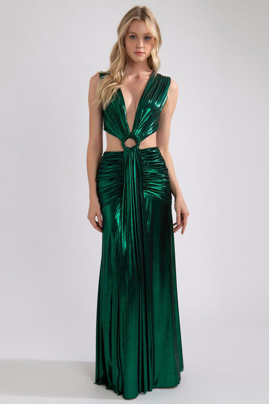 EsgotadoVESTIDO LONGO LAMÊ DRAPEADO VERDE