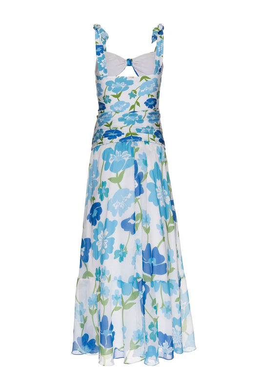 VESTIDO LONGO LASTEX FLORAL OLGA AZUL