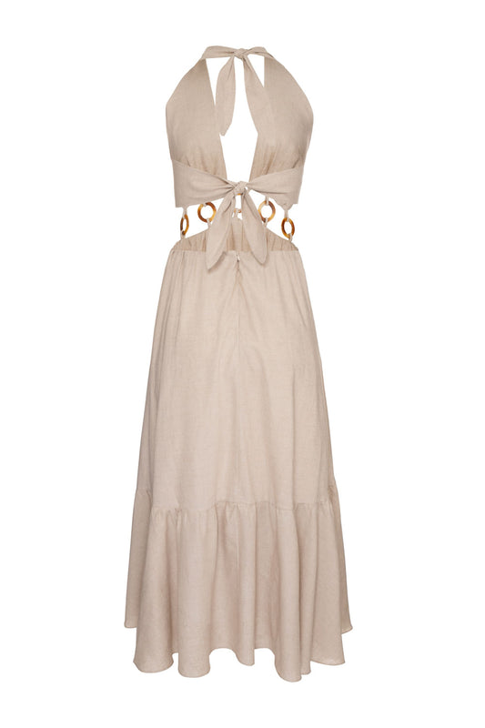 EsgotadoVESTIDO LONGO LINHO ARGOLAS NATURAL
