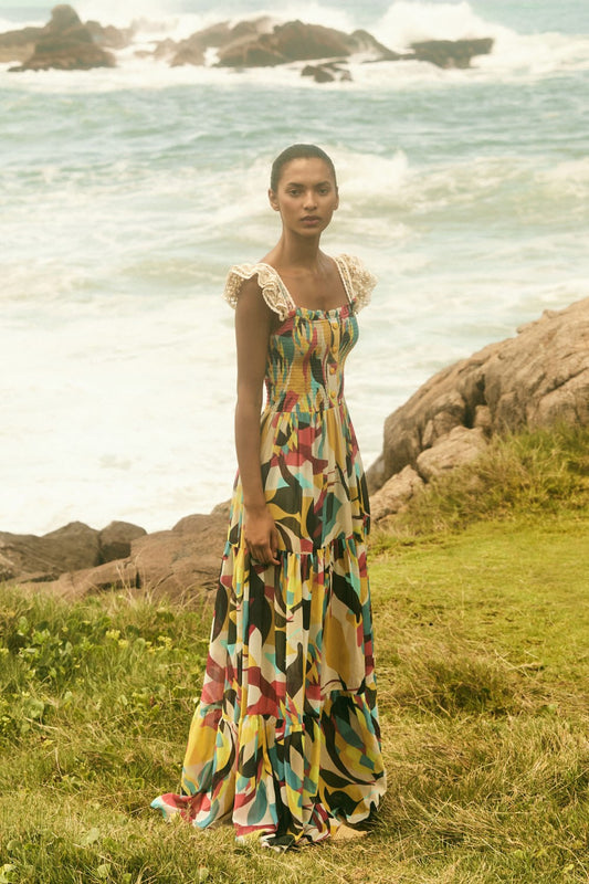 VESTIDO LONGO LAÇOS RETRÔ FLOWER OFF WHITE