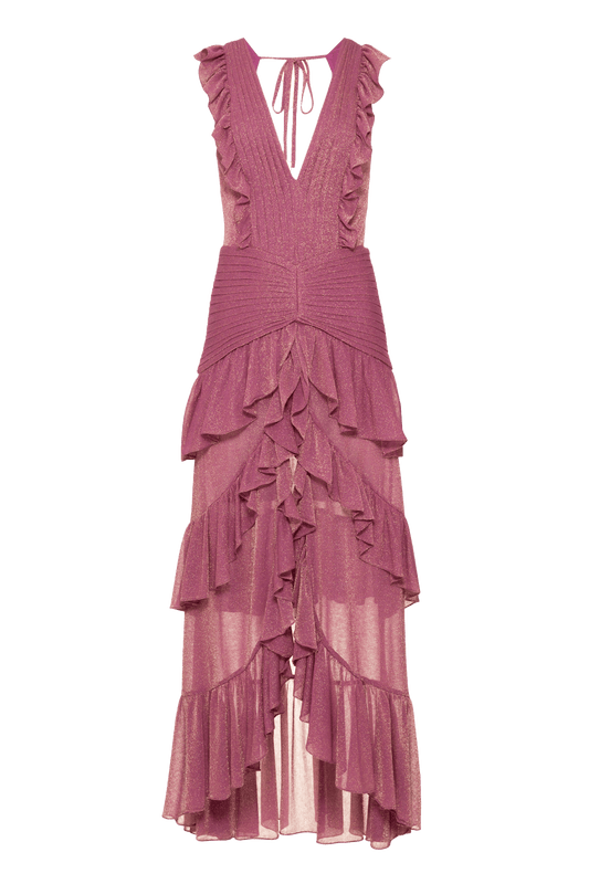 EsgotadoVESTIDO LONGO METÁLICO FRANZIDO PINK