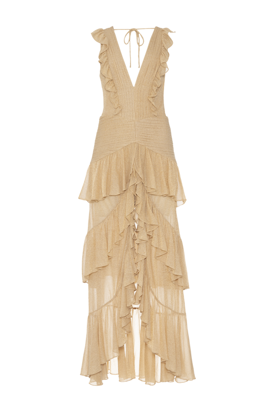 EsgotadoVESTIDO LONGO METALLIC INTENSE BEGE