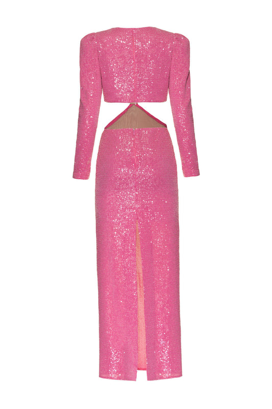 VESTIDO LONGO MANGAS PAETÊ DUCHESS ROSA