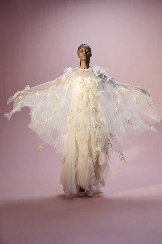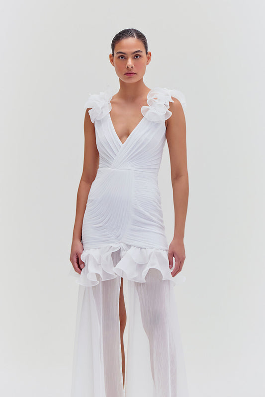 VESTIDO LONGO SEM ALÇAS PLISSADO OFF WHITE