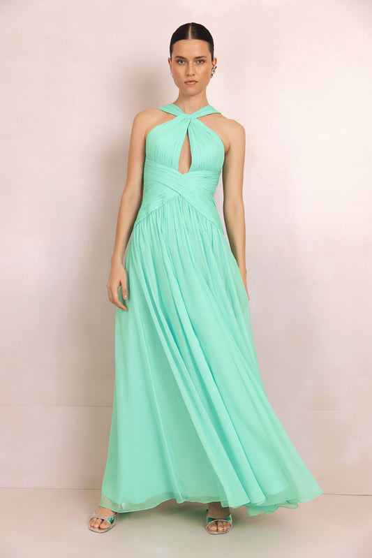 VESTIDO LONGO SILKY GRACE AURA VERDE CLARO