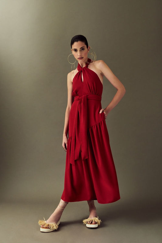 VESTIDO MÍDI ASSIMÉTRICO GEMINI VERMELHO