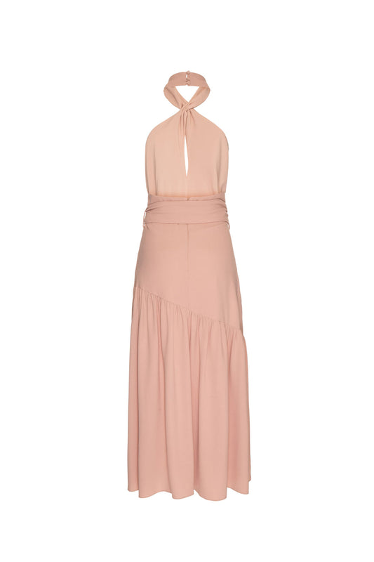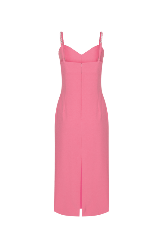 VESTIDO MÍDI ASSIMÉTRICO CLASSY FEATHERS ROSA