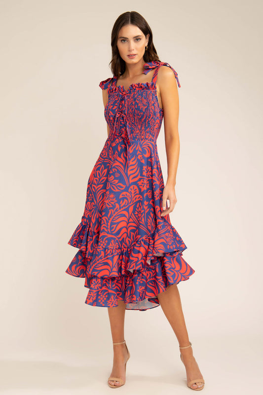 VESTIDO MÍDI BABADO FRENTE ÚNICA VERMELHO