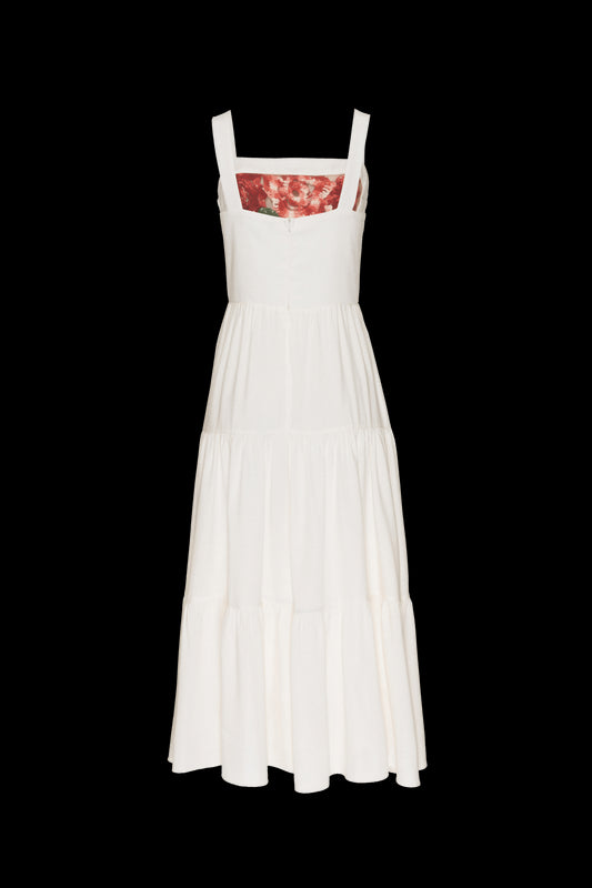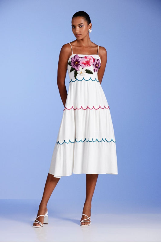 VESTIDO MÍDI BABADOS SUZY FLOWER OFF WHITE