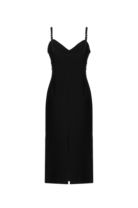 VESTIDO MÍDI ASSIMÉTRICO GEMINI PRETO