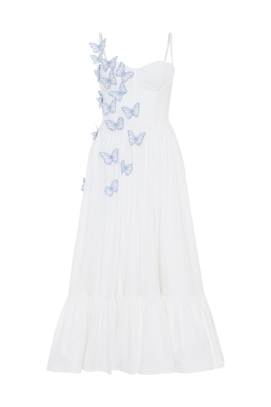 VESTIDO MIDI FLUTTER TRICOLINE OFF WHITE