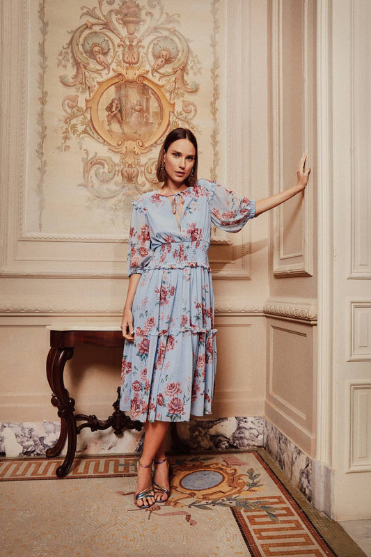 EsgotadoVESTIDO MÍDI FLORAL OLGA AZUL