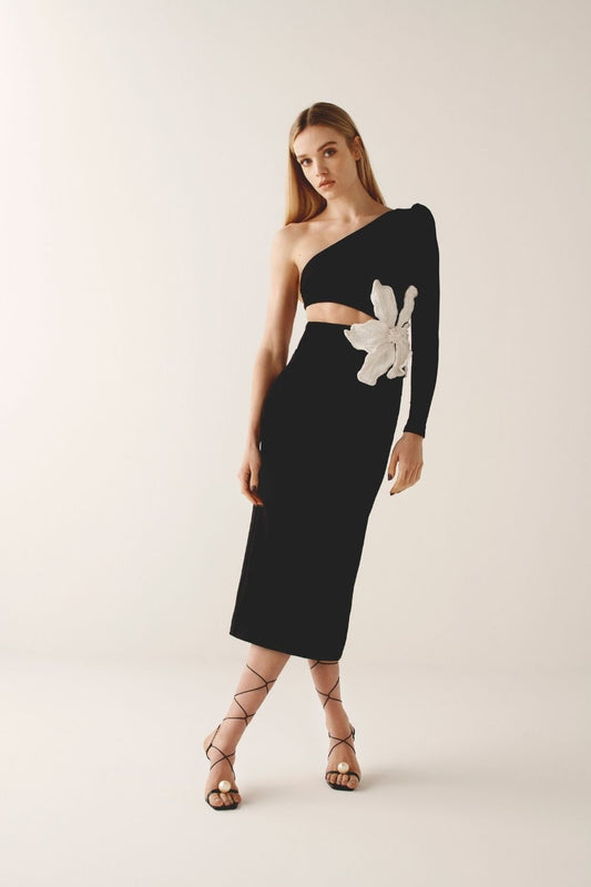 EsgotadoVESTIDO MÍDI FLOR MALHA LUXOR PRETO