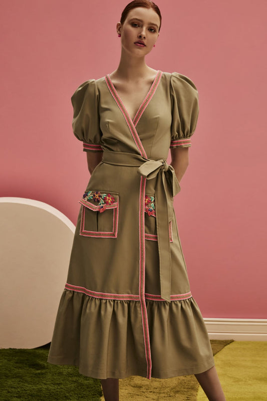 VESTIDO MÍDI ENTREMEIO LINHO FRENCH VERDE
