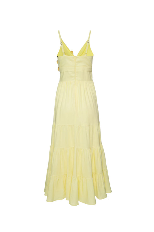 VESTIDO MÍDI FLOR LINHO BALNEÁRIO AMARELO