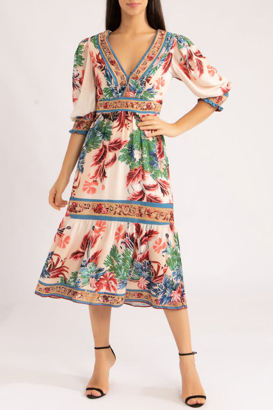 EsgotadoVESTIDO MIDI GILLY FLOWER OFF WHITE