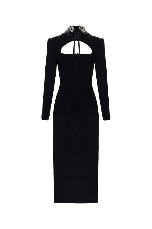 VESTIDO MÍDI GOLA BORDADA PAETÊ (PRE-ORDER) PRETO