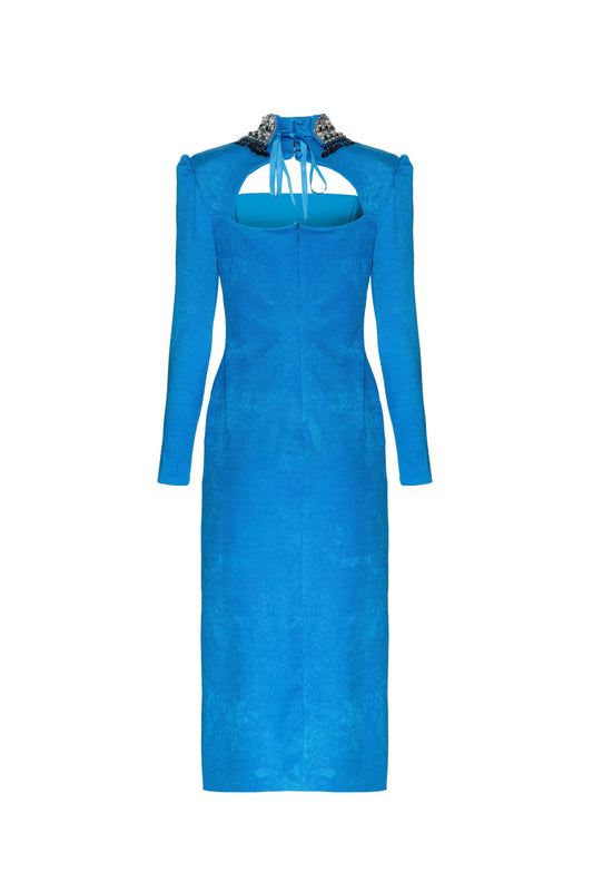 VESTIDO MÍDI GOLA REMOVÍVEL MALHA LUXOR SPY AZUL