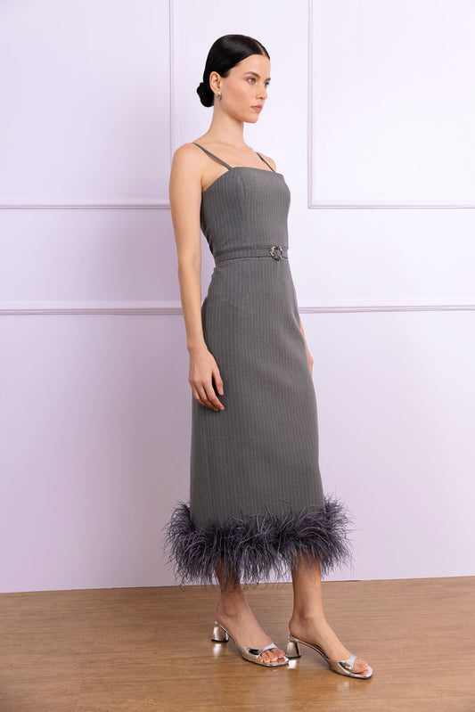 EsgotadoVESTIDO MÍDI GRAY PINSTRIPE CINZA