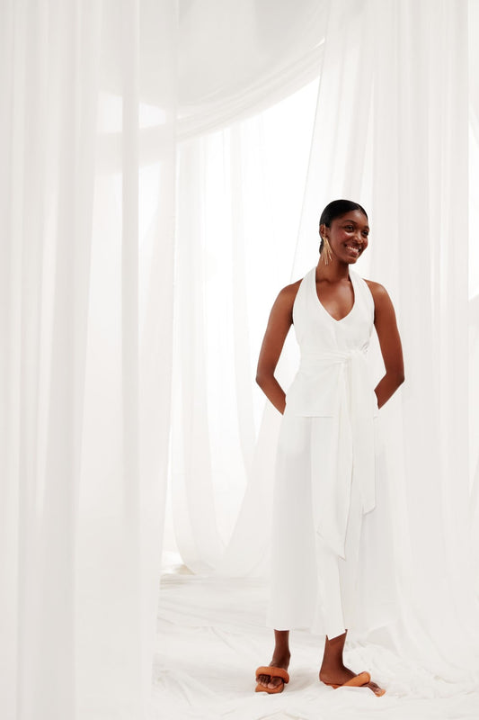 VESTIDO MÍDI FRENTE ÚNICA CREPE EDIE OFF WHITE