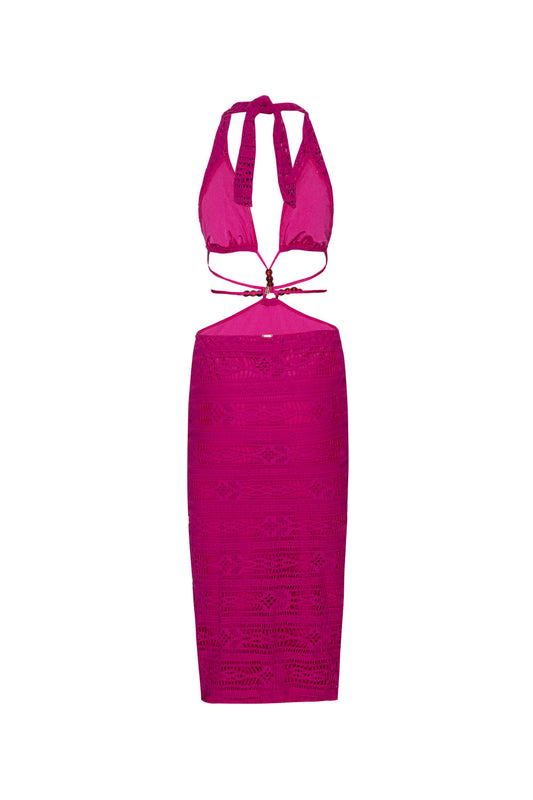 VESTIDO MÍDI FRANZIDO LINHO BALNEÁRIO PINK