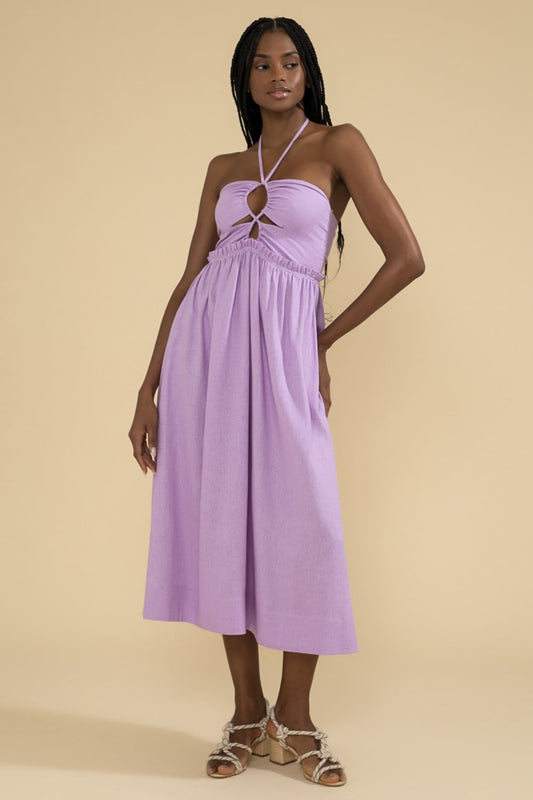 VESTIDO MÍDI FRANZIDO LINHO BALNEÁRIO LILAS
