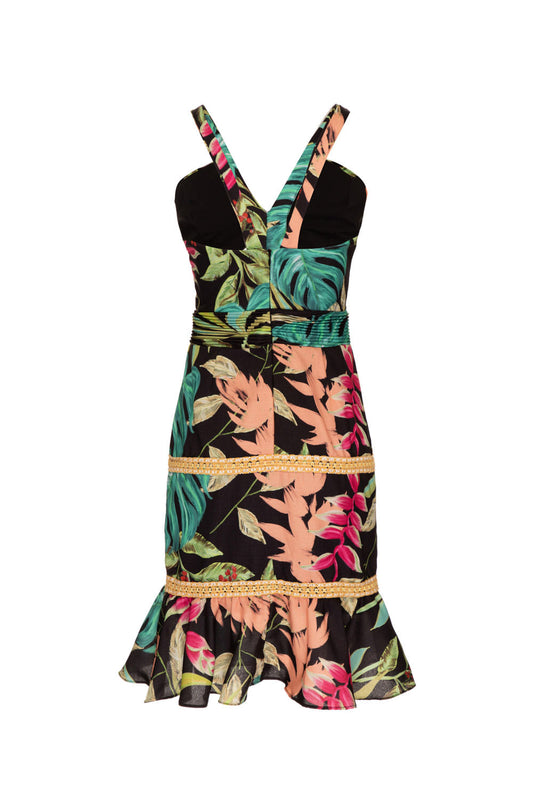 VESTIDO MÍDI FRANZIDO TROPICÁLIA PRETO
