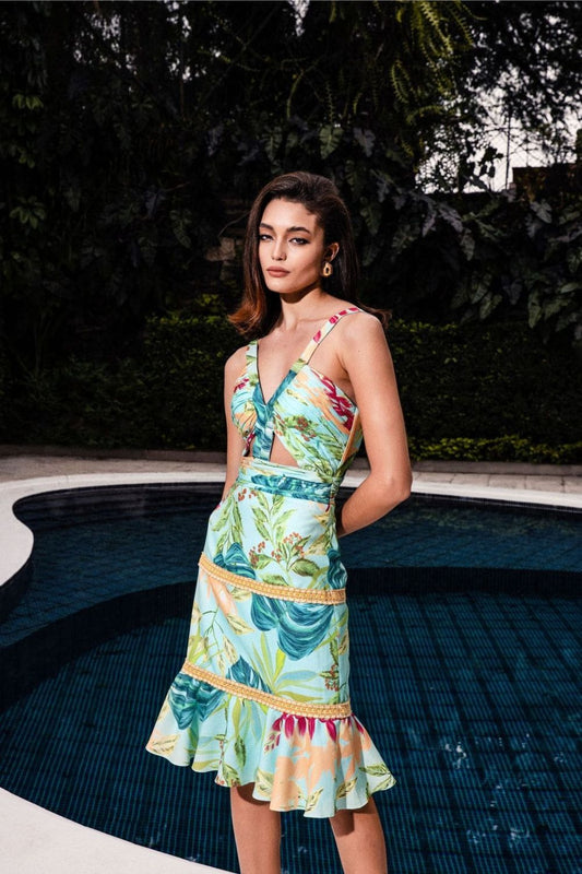 VESTIDO MÍDI FRANZIDO TROPICÁLIA VERDE