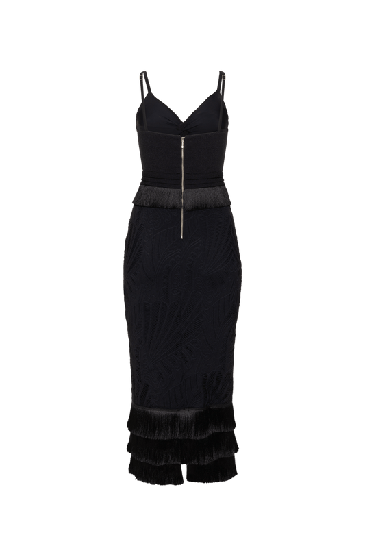 VESTIDO MÍDI FRANJA TELA GEMINI SHELL PRETO