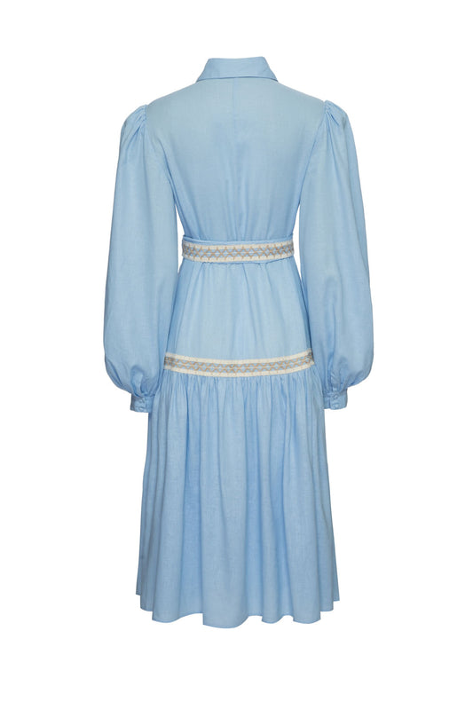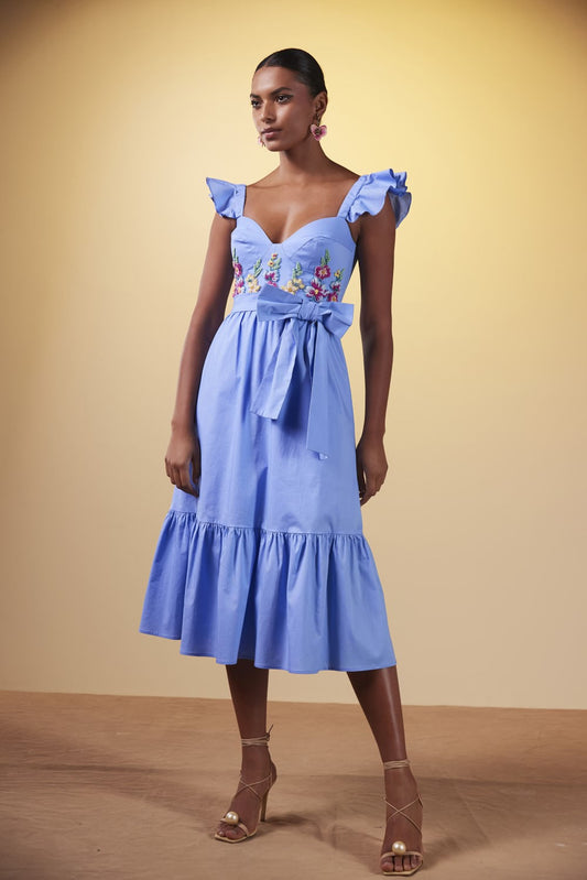 VESTIDO MÍDI LAÇO BORDADO TRICOLINE SPENCER AZUL